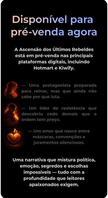 Uma narrativa que mistura política, emoção, segredos e escolhas impossíveis — tudo com a profundidade que leitores apaixonados exigem.